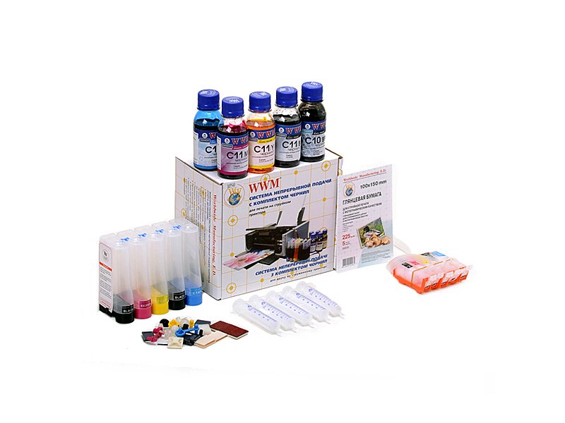 СНПЧ для струйной печати, + 5x100 г каждого цвета