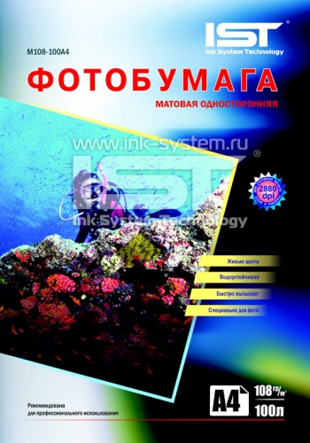 Фотобумага IST матовая, 108 г/м2, A4, 100 л (M108-100A4)