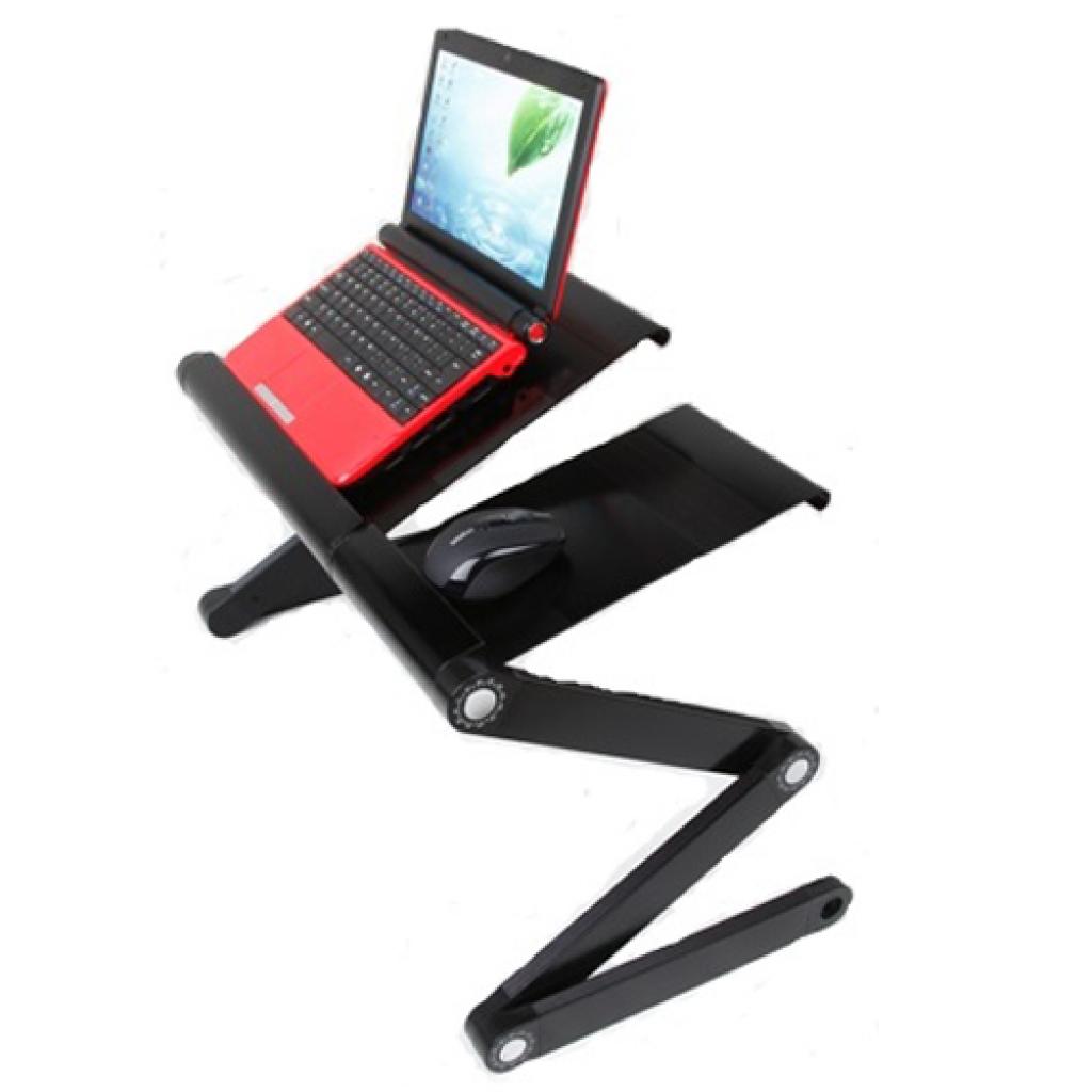 Подставка для ноутбука UFT Gigatron BlackМодель столика для ноутбука UFT GIGATRON Black получила свое название и с гордостью носит его, так как является боевой единицей в категории Столиков для ноутбука премиум сегмента.Бесспорным преимуществом UFT GIGATRON является его столешница, которая разделена на две секции: рабочая поверхность под ноутбук и подставка под мышку.Угол наклона подставки регулируется отдельно от столешницы, что позволяет настроить столик именно под себя.При необходимости, столешница может образовать единую плоскость с подставкой что позволяет разместить на неё ноутбук еще большей диагонали.В данной модели используются улучшенные шарниры, что позволило минимизировать люфт а следовательно и шаткость столика.Так же нажатие на кнопку шарнира стало необыкновенно мягким, колени вращаются вокруг своей оси очень плавно. Теперь выбирать положение и наклон столика стало еще комфортнее.Столик под ноутбук UFT GIGATRON оснащен двумя мощными и в свою очередь бесшумными вентиляторами для охлаждения Вашего ноутбука.