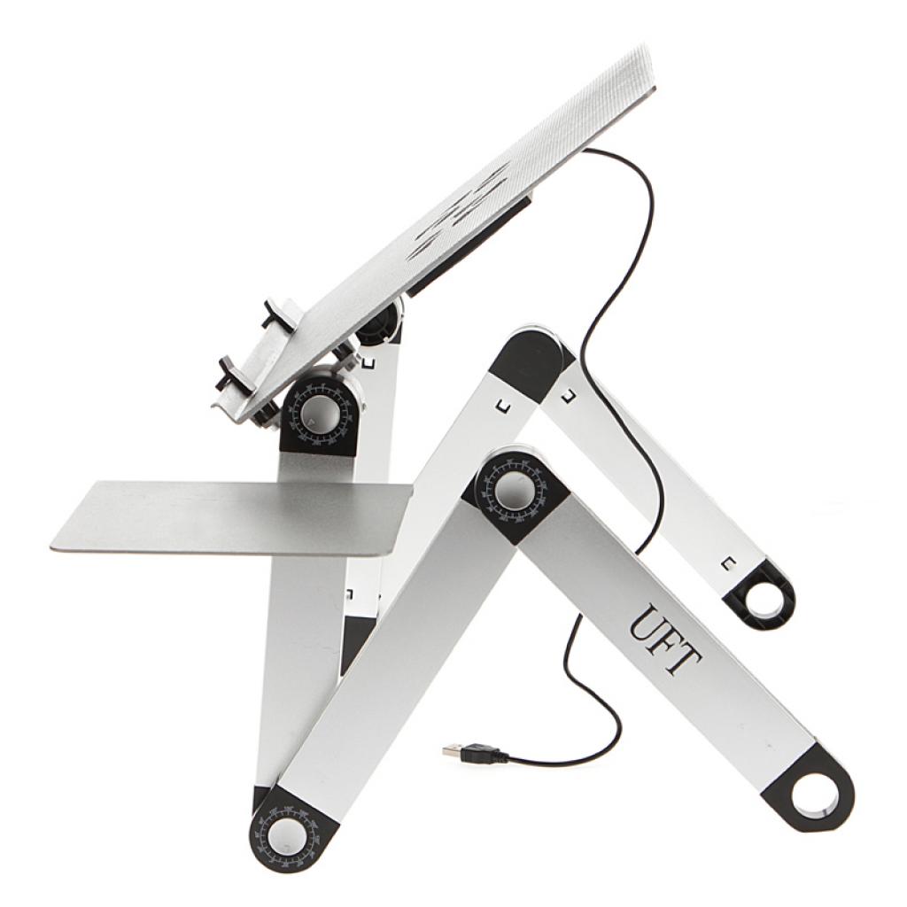 Подставка для ноутбука UFT Sprinter T6 Silver (Sprinter T6 Silver) - удобный и функциональный аксессуар для Вашего ноутбука. Эта подставка для ноутбука серебристого цвета с алюминиевым ковриком под мышку оснащена двумя большими бесшумным вентиляторами, которые обеспечивают эффективное охлаждение ноутбука.