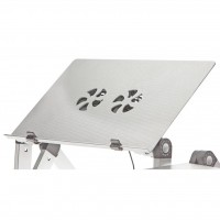 Эта подставка для ноутбука серебристого цвета с алюминиевым ковриком под мышку оснащена двумя большими бесшумным вентиляторами, которые обеспечивают эффективное охлаждение ноутбука.