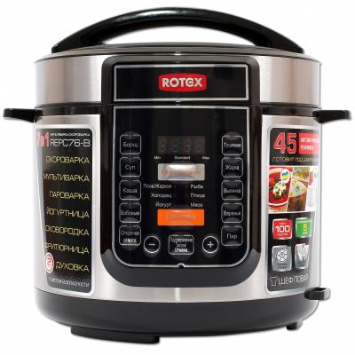 БлагодаряRotex REPC76-B Вы сможете приготовить суп, кашу, плов, холодец, джем, йогурт, сделать выпечку, а также приготовить на пару, пожарить и стушить продукты.Мультиварка имеет 16 автоматический программ а также имеет функцию "свой рецепт".