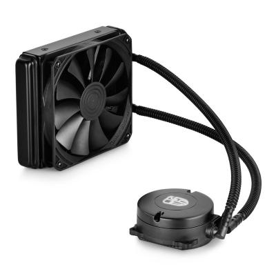 Кулер для процессора<strong> Deepcool MAELSTROM 120K</strong>-особенностью модели является медный водоблок с микроканалами шириной 0,2 мм. Он объединен с помпой, ресурс которой производитель оценивает в 120 000 ч.Двумя шлангами помпа связана с радиатором, типоразмер которого (120 или 240 мм) зависит от модели СВО.