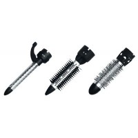 В комплекте воздушные щипцы для завивки локонов, большая круглая щетка, круглая щетка