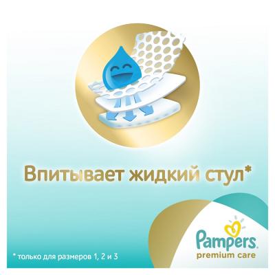 • Впитывающие каналы: Уникальная технология впитывающего слоя – три впитывающих канала – помогают равномерно распределять влагу по поверхности подгузника, обеспечивая сухость до 12 часов.• “Дышащие” материалы: Благодаря особым микропорам внешний слой Pampers Premium Care обеспечивает естественную циркуляцию воздуха, снижая уровень испарений внутри подгузника, и, как следствие, уменьшая риск возникновения дерматита.• Индикатор влаги: Специальная полоска, которая меняет желтый цвет на синий, подсказывает, когда нужно сменить подгузник.