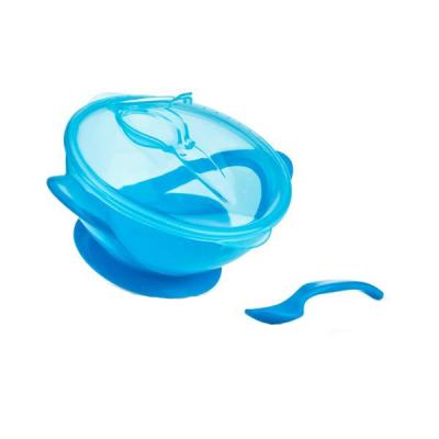 Тарелка Nuby с крышкой и ложкой на присоске, голубая (5419-2)