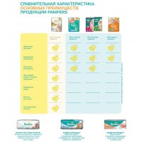- 3 впитывающих канала: помогают равномерно распределить влагу по подгузнику, не допуская образование мокрого комка между ножек.