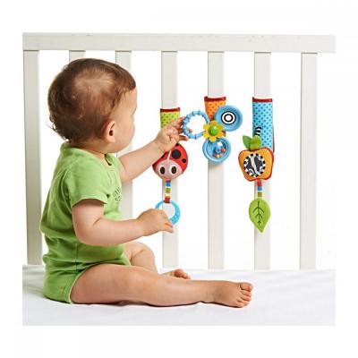 Игрушки крепятся в удобном месте кроватки или бампера прогулочных колясок, гарантируют интересную и веселую игру малыша как дома, так и на прогулке.Особенности: легкое крепление к кроваткам и к бамперу детской коляски с помощью регулируемых липучек; развитие мелкой моторики ребенка; различные игровые элементы: дребезжащая Божья коровка с грызунком, Яблочко-зеркальце с прорезывателем, Цветок-Пропеллер.