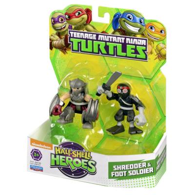 Своим компактным размером и превосходным качеством эти игрушки смогут покорить каждого мальчишку, который с детства смотрим всеми любимый мультик "Черепашки Ниндзя"!Набор состоит из двух фигурок:Шреддера (или Оруко Саки) - злейшего врага черепашек-братьев, который всю жизнь стремится побороть их и завоевать всю власть в родном городе Нью-Йорке, дабы править в нем и насаживать всем и каждому свои злые умыслы и права;Фута - одного из солдатов целого клана, который возглавлял злодей-Шреддер.