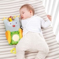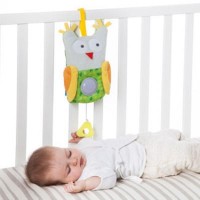 Игрушка легко крепится к кроватке с помощью ремешка на липучке; также ею можно играть, сидя на полу или в кроватке.