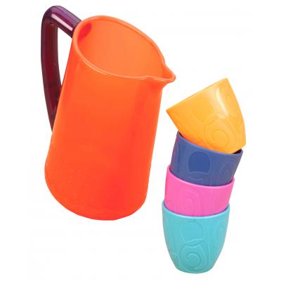 Этот красочный сервиз, украшенный орнаментами, содержит 4 комплекта тарелок, стаканов, пиал, вилок, ложек и ножей, а также красивый кувшинчик.Увлекательная сюжетно-ролевая игра не только развлекает ребенка и будит его фантазию, но и вырабатывает такие практические качества, как ловкость и слаженность движений рук, сноровку и координацию, развивает мелкую моторику пальцев рук, двигательную активность, а также трудолюбие, заботливость и гостеприимство.