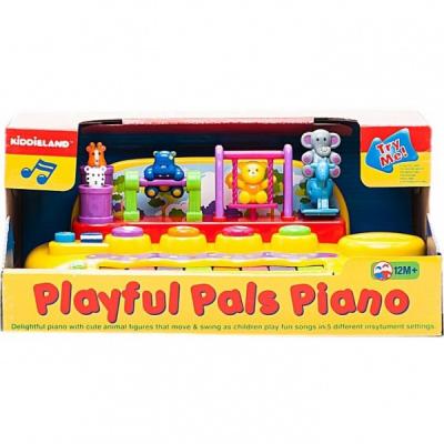 Развивающая игрушка<strong> Kiddieland Зверята на качелях (33423) </strong>развлечет малыша приятными мелодиями.Пианино с 8 разноцветными клавишами передает звучание 5 музыкальных инструментов.На игровой панели размещены фигурки животных, которые забавно двигаются, когда малыш играет на пианино или прослушивает демо-мелодии.Отличное развивающее пианино, сделанное из цветной пластмассы. Игрушка предназначена для малышей.