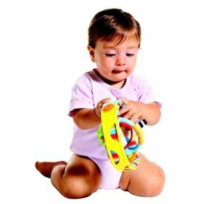 В мячике есть двустороннее зеркало иголограммное изображение, эластичная ткань и кольца, за которые удобно держать игрушку, а также элементы для режущихся зубок.3-6 месяцевРебенок может играть с кольцами, смотреться в зеркальце и толкать мячик руками, развивая мышцы шеи и плеч.6+ месяцевМяч Rock & Ball может менять форму: превращать игрушку из мячика в бубен и обратно.
