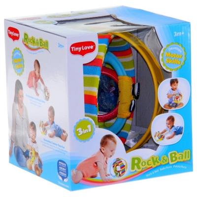 Развивающий мячTiny Love Rock & Ball (1502606830)с встроенным бубном для игры на животике, который стимулирует развитие ребенка. В мячике есть двустороннее зеркало иголограммное изображение, эластичная ткань и кольца, за которые удобно держать игрушку, а также элементы для режущихся зубок.3-6 месяцевРебенок может играть с кольцами, смотреться в зеркальце и толкать мячик руками, развивая мышцы шеи и плеч.6+ месяцевМяч Rock & Ball может менять форму: превращать игрушку из мячика в бубен и обратно.