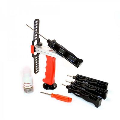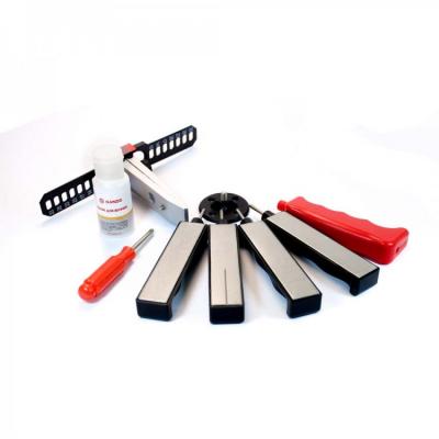 Точило Ganzo G501— это оптимальный вариант профессионального инструмента для домашнего использования. Он представляет собою установку, которая фиксируется на ровной не скользкой поверхности. Каждый пользователь может по собственному усмотрению выбрать необходимый угол заточки. При этом следует помнить, что более острый угол обеспечивает и большую остроту, но такие лезвия быстрее затупляются вновь и не подходят для работы с грубыми поверхностями.В комплект Ganzo G501входит 4 алмазных точильных камня различной гритности. С их помощью можно провести базовую выправку режущей кромки, заточить, а также отшлифовать лезвие на финальнойстадии процесса. Для достижения максимального эффекта рекомендуется перед началом затачивания добавить на камень немного масла для заточки, которое также входит в комплект поставки.Все деталиGanzo G501размещены в компактном пластиковом контейнере. Так что точильный станок удобно хранить, а при необходимости – легко взять с собою.
