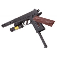 Характеризуют эту модель, функционирующую за счет двенадцатиграммового баллончика с углекислотой, стальной ствол, корпус и рукоять из прочного и легкого современного пластика, наличие лазерного прицела, фиксированная затворная рама и полуавтоматический режим огня.