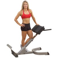 Атлетическая скамья Body-Solid GHYP-45- гиперэкстензия наклонная поддаётся ручной регулировке по высоте, благодаря чему тренажёр можно подстроить под любой рост пользователя. В качестве упоров для ног служат мягкие валики.