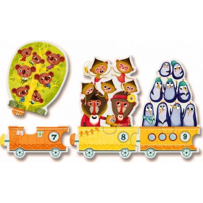 Малышу нужно будет не просто построить длинный поезд (целых 10 вагонов), а и правильно рассадить пассажиров.