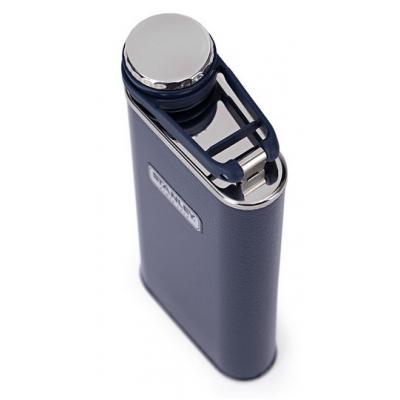 Выполнена фляга в ретро дизайне с покрытием темно-синего цвета, крышка удобная и оснащенная рычажком, позволяющим не терять её.