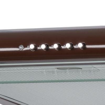 Встраиваемая кухонная вытяжка PERFELLI PL 521 BR имеет изящный дизайн и идеально подходит для узких кухонных плит, шириной не больше 50 см. Корпус модели изготовлен из нержавеющей стали, коричневого цвета и оборудован кнопками для установки режимом работы, скорости и освещения.