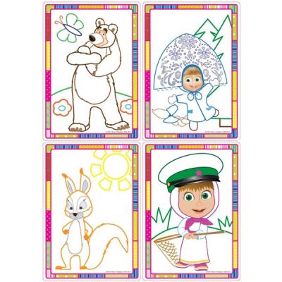 Данный набор включает четыре картинки со специальными цветными контурами, которые отталкивают краску, а цветные линии - это подсказка для ребенка каким цветом необходимо раскрашивать данную область.