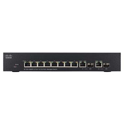 Коммутатор сетевой<strong> CISCO SF302-08MPP (SF302-08MPP-K9-EU)</strong> - 8-портовый Fast Ethernet настольный управляемый коммутатор Cisco Small Business серии 300 с поддержкой Max PoE и дополнительными 2 GE портами.Особенности:расширенные возможности по настройке качества обслуживания трафика (QoS);бюджет РоЕ коммутатора составляет 124 W;расширенная настройка безопасности для защиты данных в сети;статическая маршрутизация Layer 3;поддержка IPv6: защита инвестиций и обеспечение готовности сети к внедрению Internet-протокола нового поколения - IPv6 и сервисов на его основе;-автоматическая настройка параметров сети для внедрения IP-телефонии (Auto voice VLAN), поддержка VLAN, зеркалирование портов и VLAN-ов;поддержка jumbo-фреймов до 9 Кбайт;поддержка технологий энергоэффективности (уменьшение энергопотребления и затрат на электричество);простая настройка и управление с помощью веб-интерфейса;управление и настройка: CDP, Auto Smartports, командная строка, Cisco FindIT, Simple Network Management Protocol (SNMP), консольный порт.