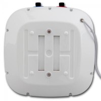 Настенный бойлер белого цвета с мощностью 1500 Вт. Его объем составляет 15 л.