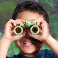 Бинокль Мелиса оформлен в приятном зелено-оранжевом цвете, а забавная стрекоза добавит веселья маленькому натуралисту.