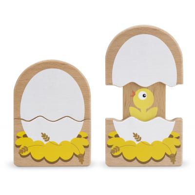Когда Ваш малыш раздвигает две половинки яйца, то он видит, как появляется птенчики.