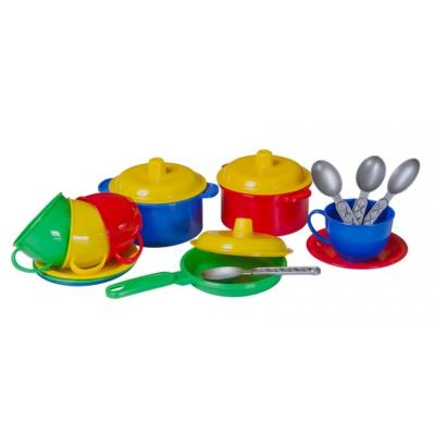 С этим набором ваша малышка ощутит себя в роли настоящей хозяйки и сможет накрыть стол для своих куколОсобенности:В комплекте есть приборы для готовки, еды и чаепития на четыре персоныТовар сертифицированДля детей от 3 лет.