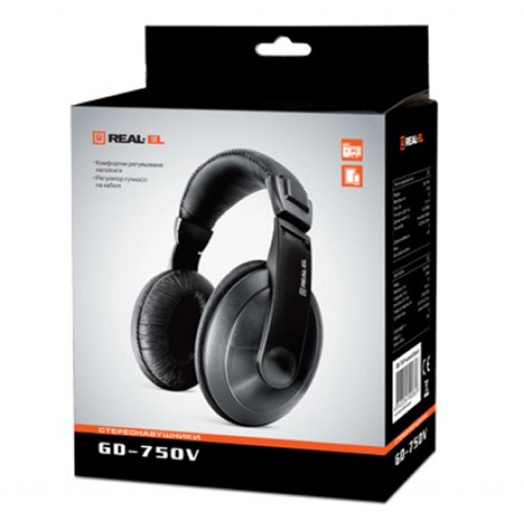 Наушники оснащены регулируемым оголовьем, регулятором громкости и штекером 3,5 мм (3 pin) для подключения ПК и мобильных устройств.Регулируемое оголовье устройства REAL-EL GD-750V Black обеспечивает удобную посадку наушников на голове.