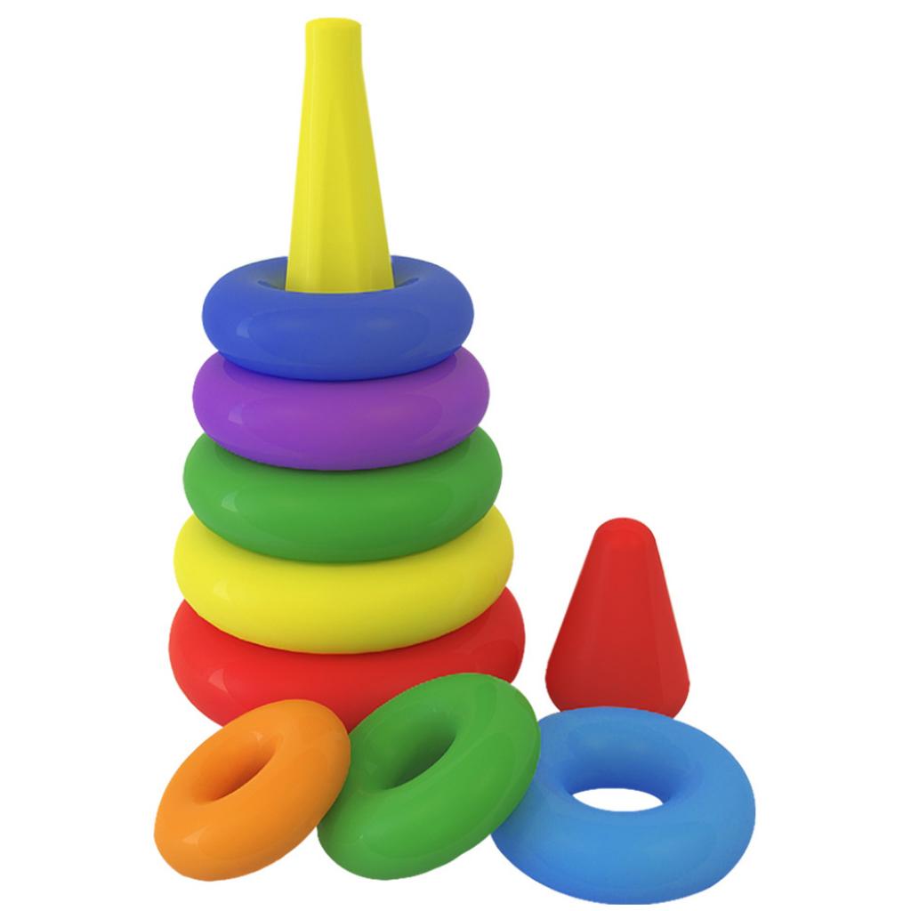 Пирамидка ТехноК — веселая классическая большая пирамидка с яркими цветами, которая займет малыша.