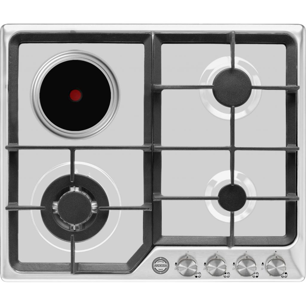 Среди функций, положительно характеризующих эту модель, - автоматический электроподжиг.Материал панели конфорок - нержавеющая сталь.