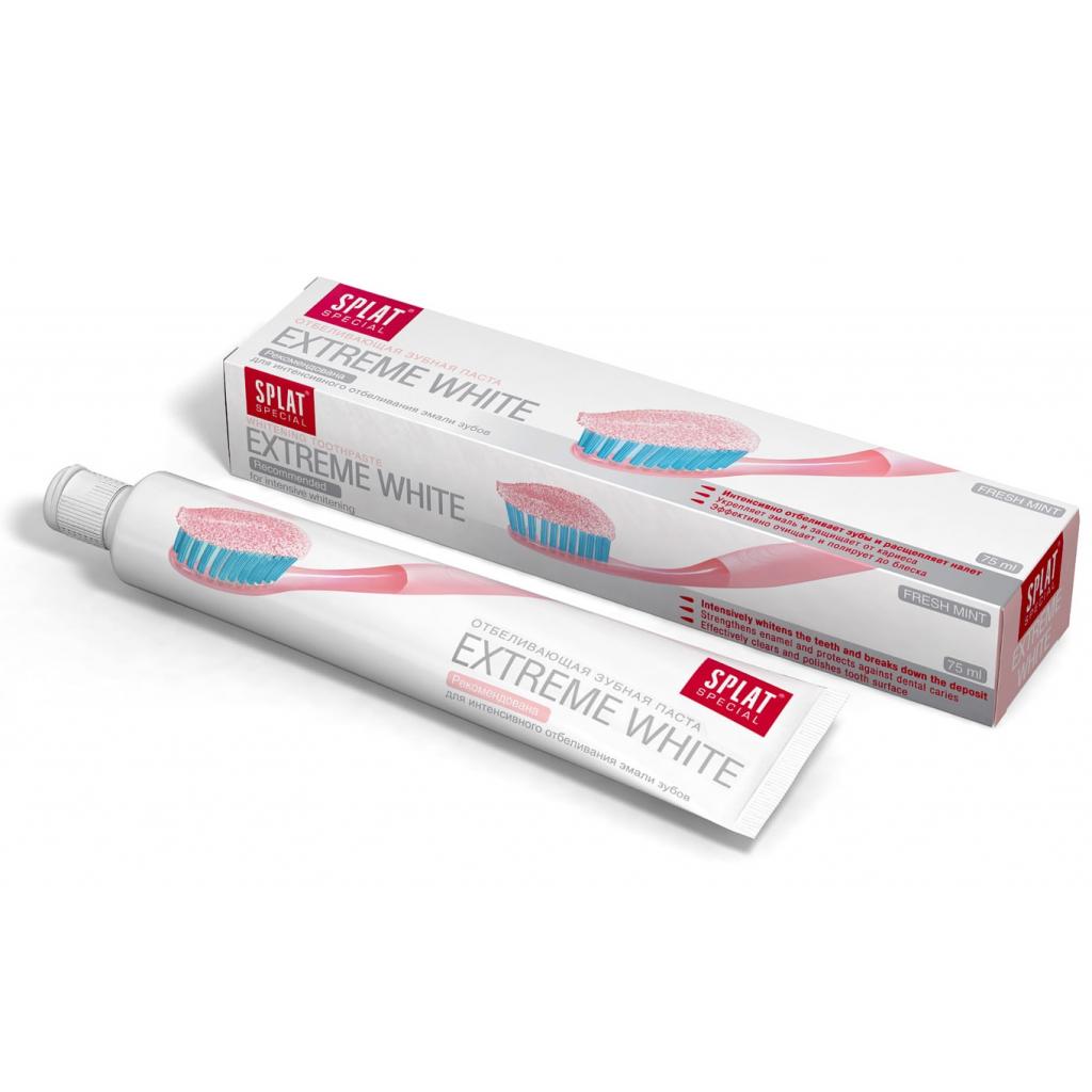Именно поэтому так важно очищать зубы каждый раз после приема пищи и использовать пасты для укрепления эмали.Зубная паста Splat Special Extreme White 75 мл (7640168930271) - эффективное отбеливание на 2 тона в домашних условиях.