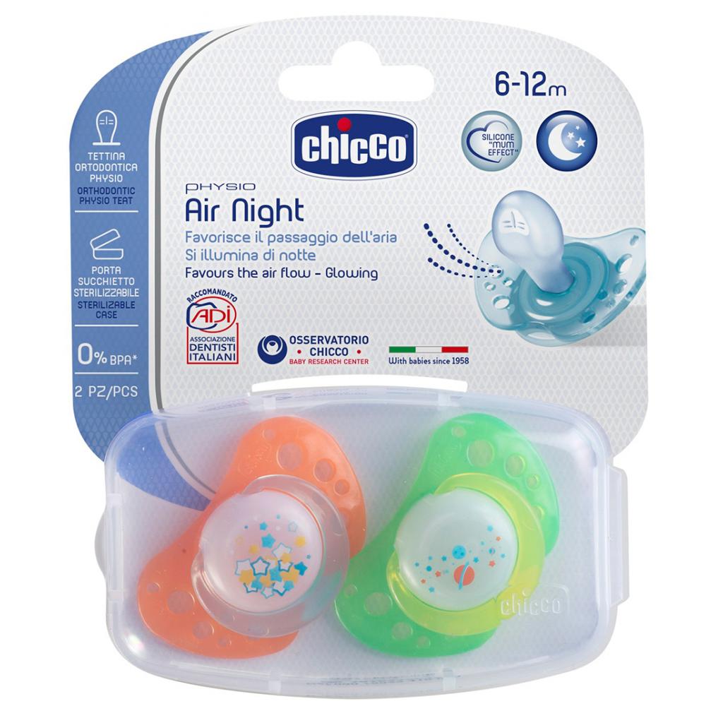 Серия пустышек Chicco “Physio Air” с ортодонтической активной соской обеспечивает дополнительную вентиляцию, заботясь о нежной коже малыша! Соска пустышки выполнена из силикона с покрытием "Эффект мамы", которое делает ее максимально мягкой и гладкой.- Эргономичная форма пустышки оставляет достаточное количество свободного пространства до подбородка и носа ребенка.- Дополнительные вентиляционные отверстия на щитке пустышки обеспечивают максимальную вентиляцию воздуха, предотвращая раздражения от слюны.- Язычок самой пустышки имеет максимально тонкое основание для оптимально правильного закрытия рта, наклонный профиль с желобками способствует естественному движению рта, тонкие края для корректного положения языка.- Пустышка снабжена кольцом для удобства пользования.- Пустышка выполнена из силикона — это прозрачный, износостойкий, гигиенический материал, без вкуса и запаха.- Веселые картинки и цвета самих пустышек подчеркнут индивидуальность ребенка.Компания CHICCO была создана, чтобы подарить родителям и детям радость и заботу, облегчить и решить все проблемы.