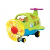 В кабине представленного самолетика имеется место для троих пассажиров (их фигурки входят в комплект); задняя хвостовая часть открывается - там можно хранить багаж; имеется тележка для перевозки багажа.Кроме того, что Самолет очень красиво внешне оформлен, он обладает еще и такими функциями:вращается пропеллер;лампочки на пропеллере светятся яркими огонечками;нажав на штурвал, можно услышать звуки турбин самолета, а также информацию о начале "взлета";нажимая на фигурки человечков-пассажиров, малыш услышит веселые мелодии.Игрушка изготовлена из очень качественных и безопасных материалов.