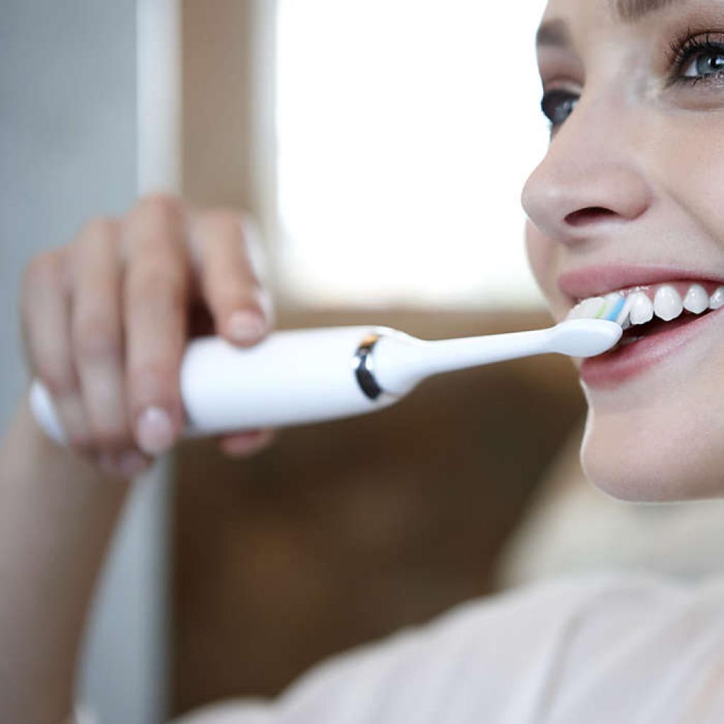 Благодаря сочетанию высокой частоты особенной скорости движения щетинок (до 31 000 вибраций в минуту) и широкой амплитуды во время чистки зубов создается динамический поток жидкости, которая начинает циркулировать, двигаясь по кругу, очищая зубы со всех сторон и проникая во все труднодоступные места и вдоль линии десен.Таким образом, гаджет не просто механично очищает поверхность зубов, но буквально вымывает налет и бактерии, не повреждая эмаль.