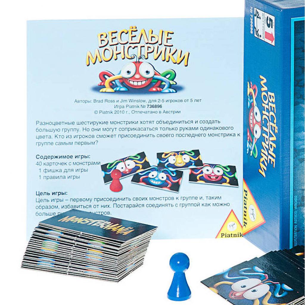 Настольная игра Piatnik Веселые монстрики (736896). Разноцветные и веселые шестирукие персонажи-монстрики очень хотят объединиться в большую дружную группу.