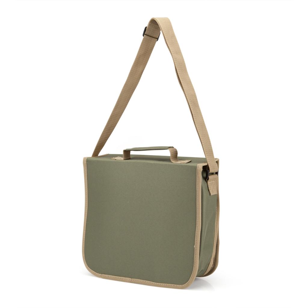 Посуда и столовые приборы легко вмещаются в компактную сумку.