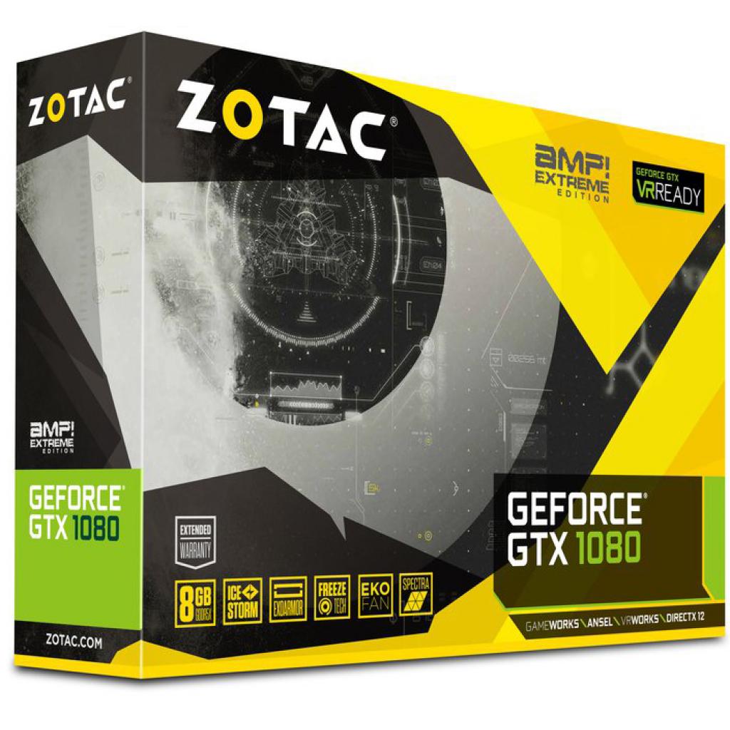ZOTAC GeForce GTX1080 8192Mb AMP Extreme (ZT-P10800B-10P) - это новый виток развития видеокарт в основе которого лежит микроархитектура Pascal. Мощный графический ускоритель предназначен для игровых настольных компьютеров и систем виртуальной реальности.