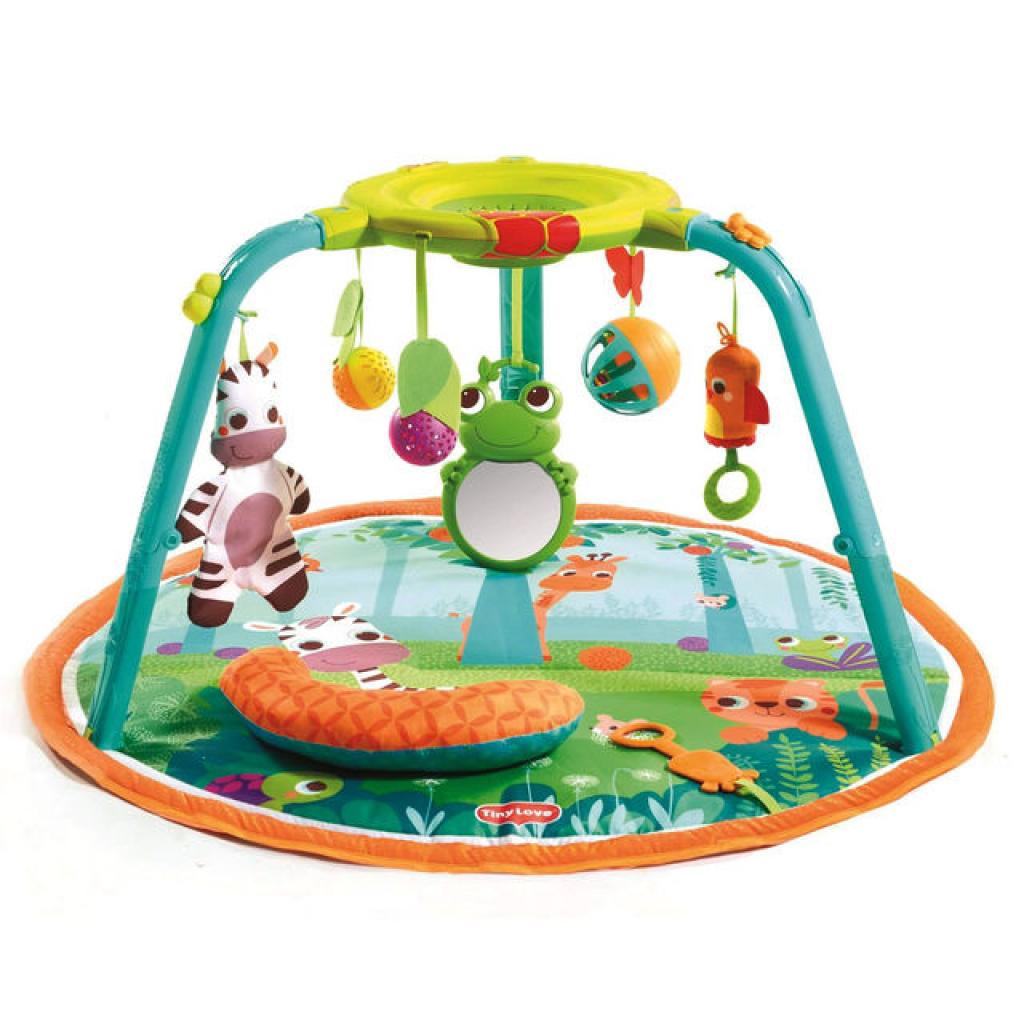 Уникальный развивающий коврик, оснащенный регулирующимися дугами, с помощью которых можно выбрать один из трех режимов для стимуляции развития ребенка и тренировки его грубой и мелкой моторики, начиная с рождения.Режим 1: Лежа — удобная подушка для лежания на животике и большой выбор стимулирующих игрушек, которые помогают увлечь ребенка и продлить время выкладывания на живот, или развлечь его в то время, что он лежит на спине.Режим 2: Сидя — коврик складывается и превращается в развлекательный центр с интерактивной игрой в шарик, которая помогает укреплять навыки мелкой моторики и укрепляет мышцы, необходимые для сидения.Режим 3: Стоя — веселая спиральная игра с шариком занимает стоящего малыша и стимулирует его когнитивное развитие.Развивающий коврик 1, 2, 3 Я расту от Tiny Love это коврик нового поколения. Он действительно растет вместе с вашим ребенком.