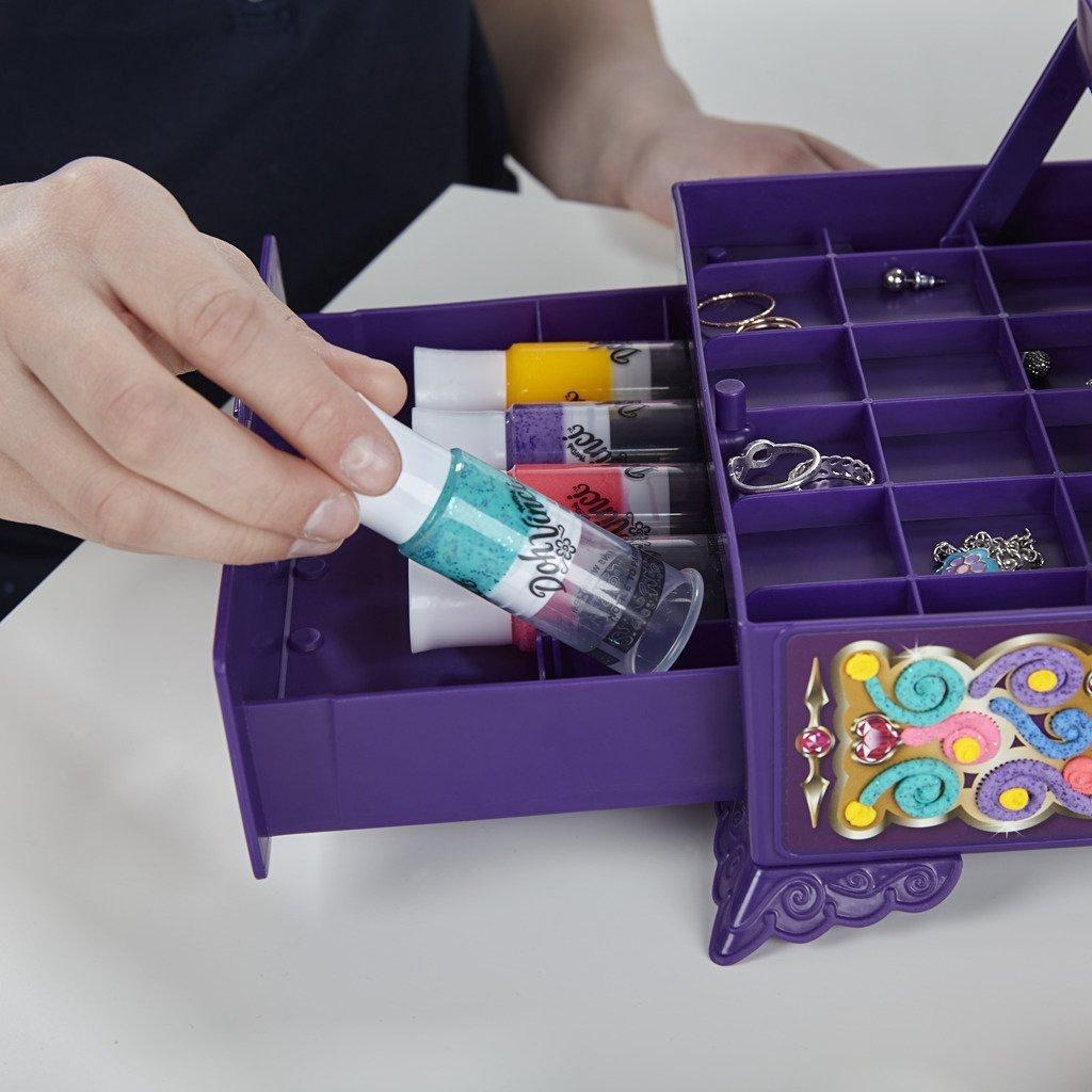 Набор для творчества Hasbro DohVinci Волшебная шкатулкаНовинка от компании Хасбро набор "Волшебная шкатулка" DohVinci – это одновременно и уникальная возможность для творчества, и красивый предмет интерьера, и крайне полезная в хозяйстве вещица, внутри которой можно хранить самые разнообразные мелочи. Множество полочек, выдвижных ящичков и отсеков шкатулки позволяют удобно и компактно разместить в ней предметы самого различного размера, начиная от крохотных бусинок и заканчивая, например, инструментами для рукоделия.