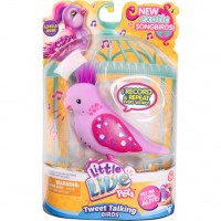 А в благодарность за Вашу любовь, попугайчик порадует Вас замечательной прочириканой мелодией.Интерактивная птичка" Цветок Бони" Moose умеет делать такое:<ul><li>издает 30-ть звуков: чирикает, насвистывает мелодии, издает звук трели и разговаривает;</li><li>есть возможность записи 10 секунд Вашей речи, которую птичка потом будет повторять;</li><li>умеет повторять слова не только за людьми, но и за другими птичками "The Little Live Pets Bird";</li><li>забавно машет крылышками.</li></ul>Самым главным достоинством данной птички есть то, что ей не понадобится специальная клетка, она не будет просить кушать, не будет гадить в Вашей квартире.