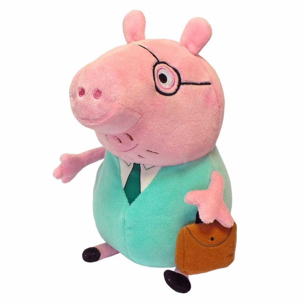 Игрушка Папа свин с портфелем выполнена из мягкого и приятного плюша, а также плотно набита.