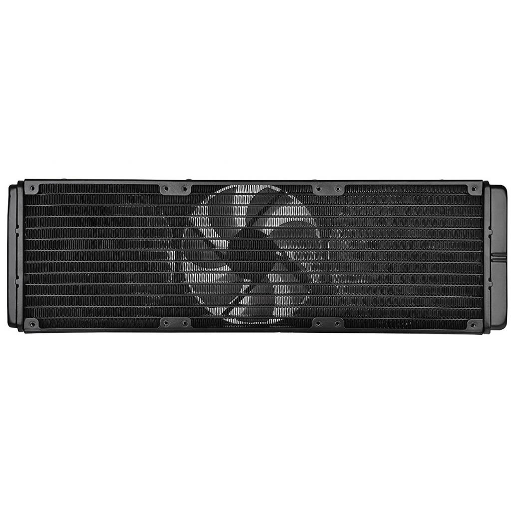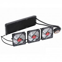Кулер для процессора ThermalTake Water 3.0 Ultimate (CL-W007-PL12BL-A) — необслуживаемая процессорная система жидкостного охлаждения предназначена для установки на процессоры с сокетом 1366 / 1150 / 1155 / 1156 / 2011 от Intel, и FM1 / FM2 / AM2 / AM2+ / AM3 / AM3+ от AMD.Скорость вращения трех вентиляторов типоразмера 120 мм составляет 1000 — 2000 об/мин, что является стандартной скоростью для вентиляторов компании Thermaltake. Их скорость регулируется с помощью PWM (ШИМ) а максимальный шум производимый кулером составляет 20 дБ.Thermaltake Water 3.0 Ultimate имеет традиционную схему компоновки, в которой водоблок со встроенной помпой двумя шлангами связан с 240 мм радиатором, который обдувается вентиляторами.