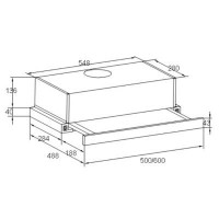 Компактные габариты данной модели позволяют ее разместить над варочной поверхностью даже в небольшой кухне.При необходимости выдвижная телескопическая панель свободно увеличивает площадь втягивания, что повышает эффективность работы вытяжки.