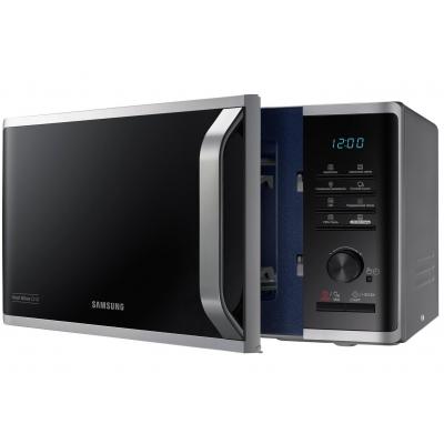 Футуристический дизайн Samsung MG23K3575AS/BW умело привлекает к себе внимание покупателей.