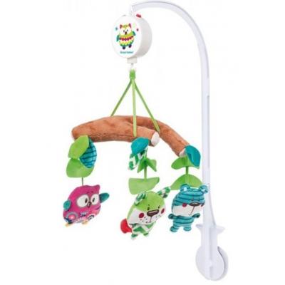 Мобиль медленно вращается под нежную музыку, способствуя засыпанию.Симпатичные и легкие съемные плюшевые игрушки стимулируют развитие координации и зрения.