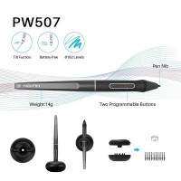Кроме того, поверхность экрана покрыта антибликовым стеклом, которое существенно уменьшает "блики" и обеспечивает лучшую защиту вашего зрения.Перо с поддержкой функции наклонаПеро PW507 с 8192 уровнями чувствительности к нажатию, без батареи легко позволит вам рисовать на пиксельном уровне.