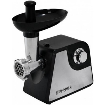 Grunhelm AMG180SJ - простая компактная модель мясорубки с ручкой <ul><li>Диаметр камеры мясорубки: 54 мм.</li><li>Низкий уровень шума.</li><li>Реверс.</li><li>Нескользящие резиновые ножки.</li><li>Мясорубка включает 2 шт. решеток (5мм - средний, 7мм - крупный).</li></ul>